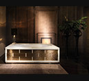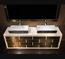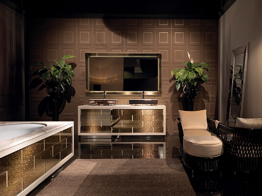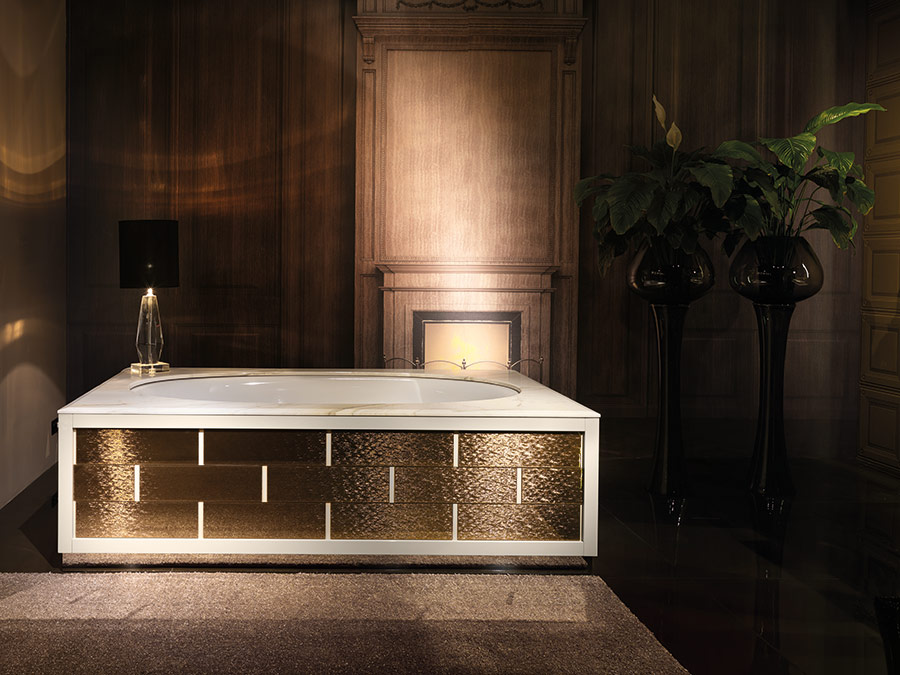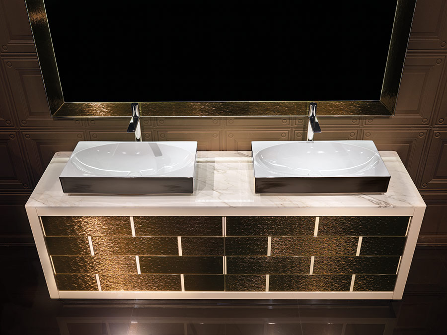 Inspired by the 30's, literature, architecture and lifestyle of that period, the collection RITZ is almost a tribute to the American Scott Fitzgerald, but also to the period "Italian Empire" that galvanized the architects and the Italian bourgeoisie of that time. Design cultured, luxurious, RITZ is a collection characterized by several elements: portals lacquered, stained glass and stone top for an environment of prestige, continues to search for a user of a piece of high design and architecture.