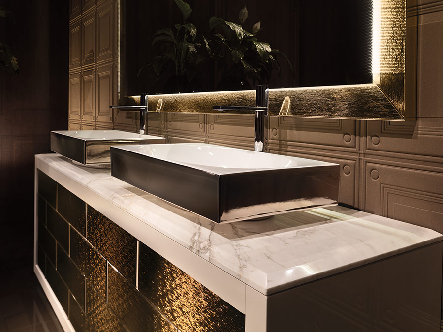 Baths, mirrors, sinks and columns complement the range for a stylish bathroom and monumental.
