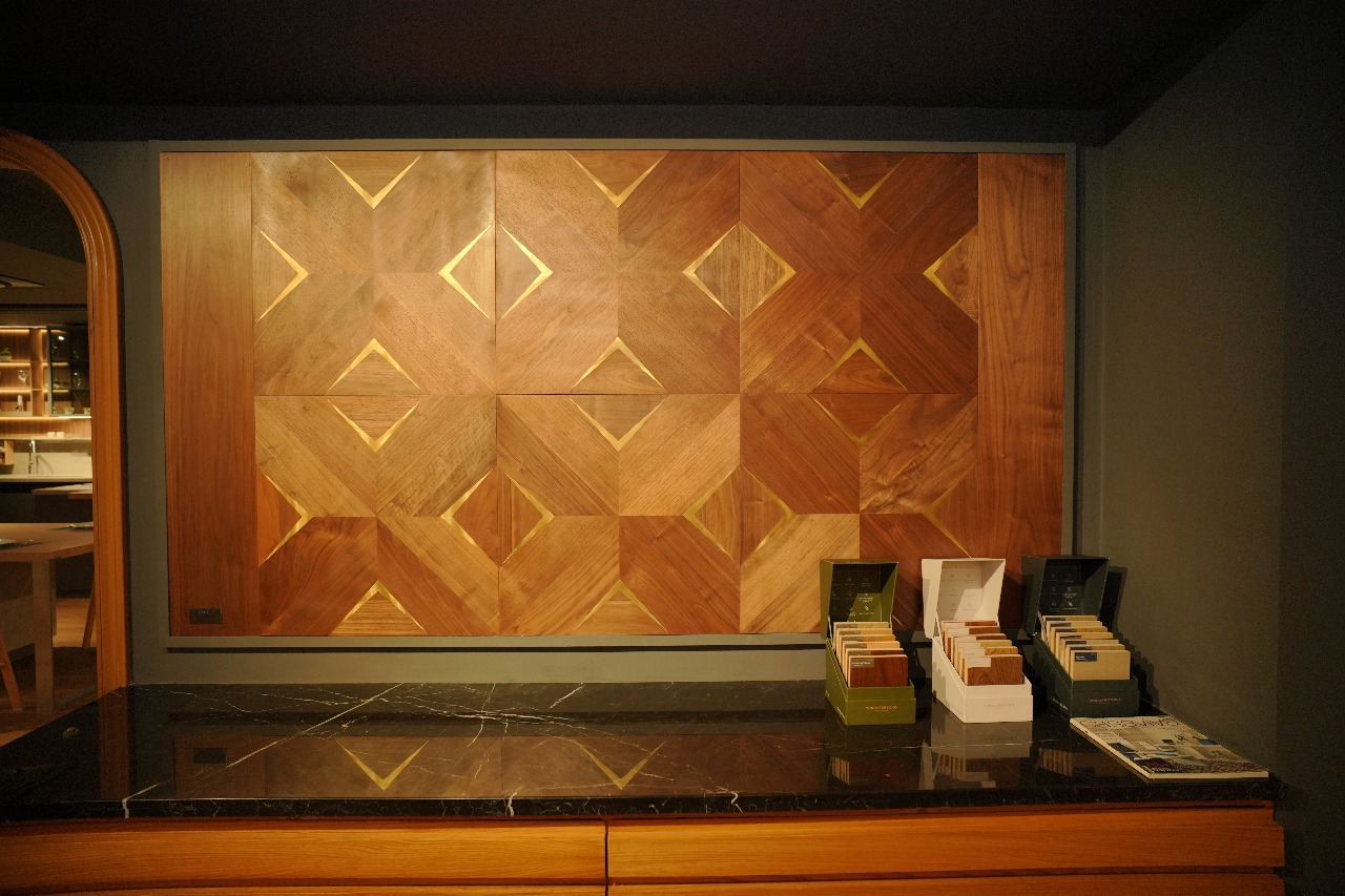 The wood and laminate floors division under FCML, called FCML Wood Floors offers a variety of species, finishes, and inlay options in combinations of wood-stone, wood-leather, wood-wood etc.